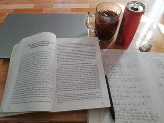 在家里,每天我过得都一样,一点儿特别的也没有,甚至算得上挺无聊的。天天看书,拉小提琴,做饭,打扫卫生。但是也没有办法,因为在家自学不如在学校跟朋友们听老师讲课。而且还有课程注册的问题,需要跟老师们联系然后自己在家阅读文献资料,再交作业,这也不是一件容易的事。所以我偶尔会埋怨自己,为什么那年我要回国。但是最后想来想去,我觉得在家也不错。比如我能多抽些时间陪父母,还有照顾两只狗。我不用在线学拉小提琴,我能在家里练习,拉琴水平已经有所提高。再说在自己房间练习拉琴比在宿舍好得多,因为不会打扰室友。特别是我每个星期都可以去综合图书馆查找阮攸诗歌的资料。因为我的论文题材是“比较李白、白居易与阮攸诗歌中的女性形象”,所以在越南我能找到许多与阮攸的诗歌有关的书籍和论文。